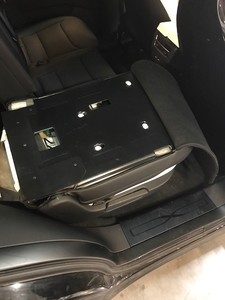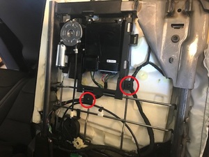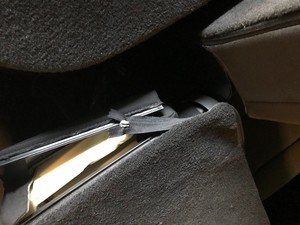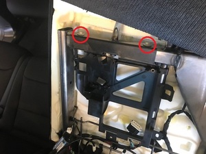 Lift the leather seat back cushion away from the seat to access the top fasteners of the ECU mount bracket.