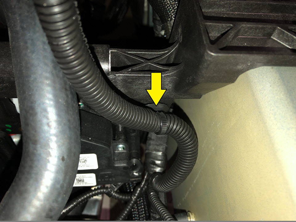 Remove the fir tree clip that attaches the cooling fan electrical harness to the support beam using a clip pry tool.