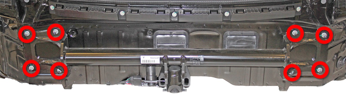 Remove the nuts (x8) that secure the trailer hitch to the studs on the body
