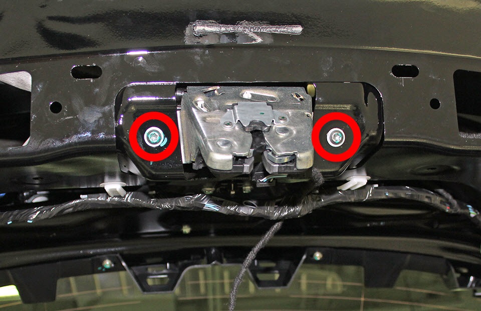 Remove the screws (x2) that secure the liftgate latch to the liftgate (torque 10