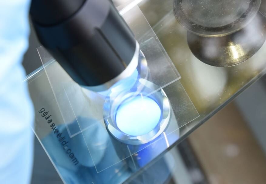 NoteEnsure no air is present beneath the film tab. The resin requires anaerobic curing.