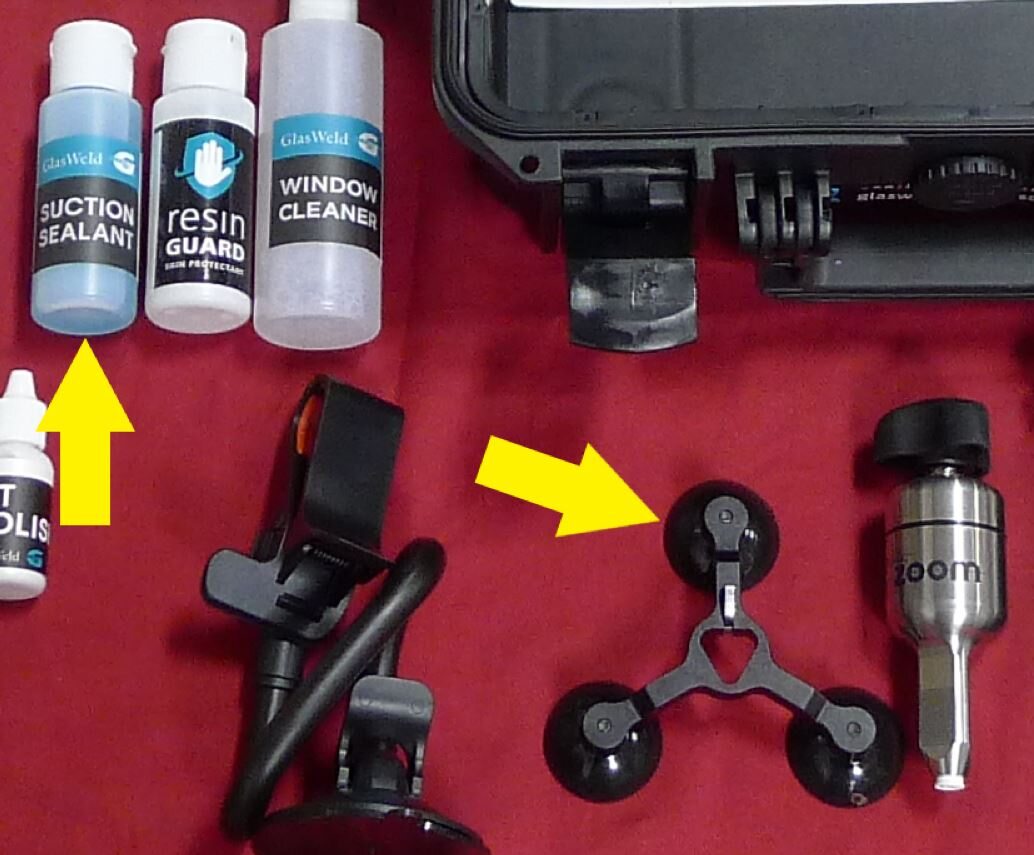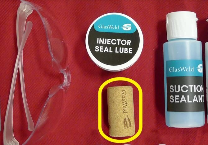 Inspect the glass crack repair kit, ensure all tools are present and resin residue is not present, and then inspect the seals for cracks, wear or swelling.