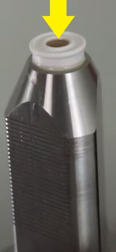 Stabilize the injector with one hand, and then turn the piston clockwise until the white seal swells to inject the resin.
