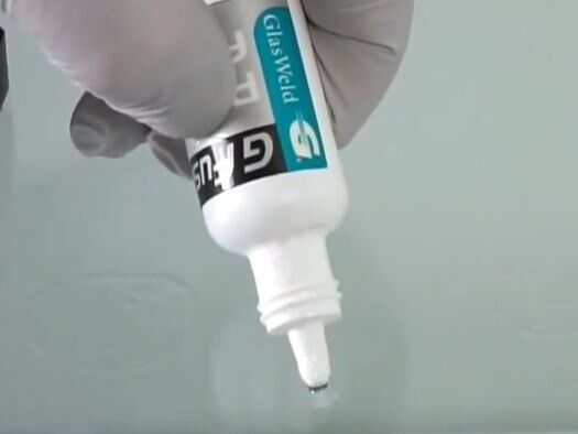 Apply one drop of Pit Filler just above the impact point, and then place a clean dry film tab over the filler.