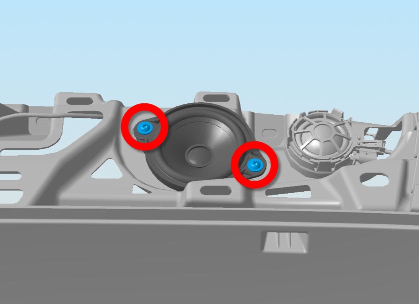 Remove the screws (x2) that secure the speaker to the liftgate (torque 2.3