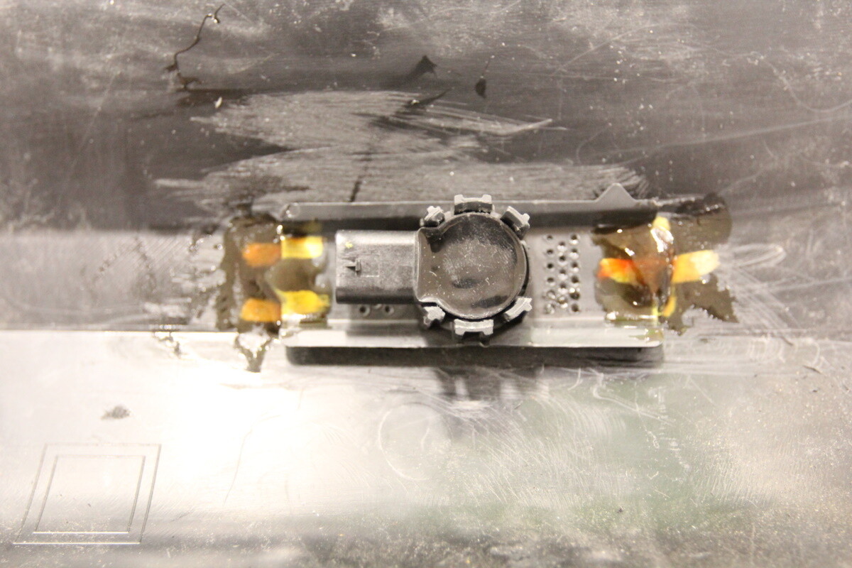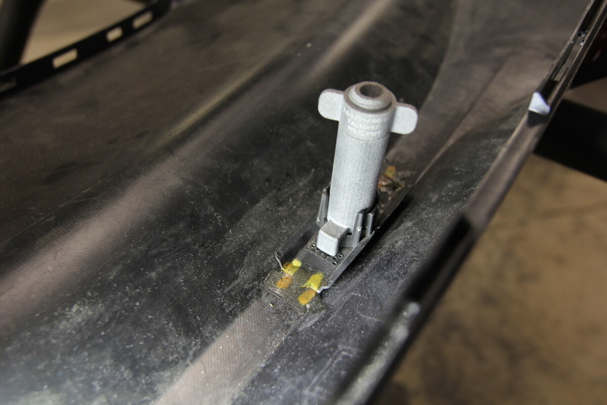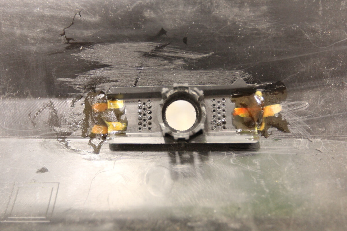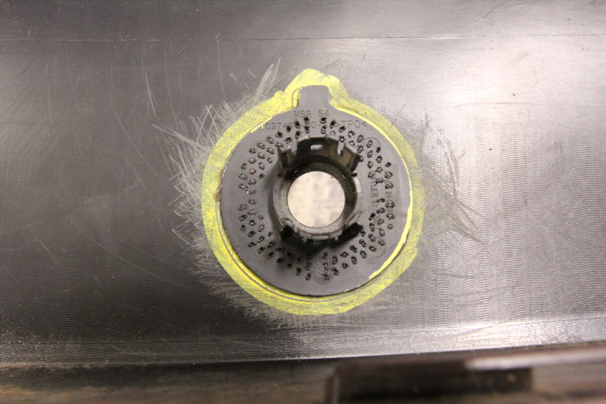 Test fit the new retainer with the parking distance sensor installed. Mark
