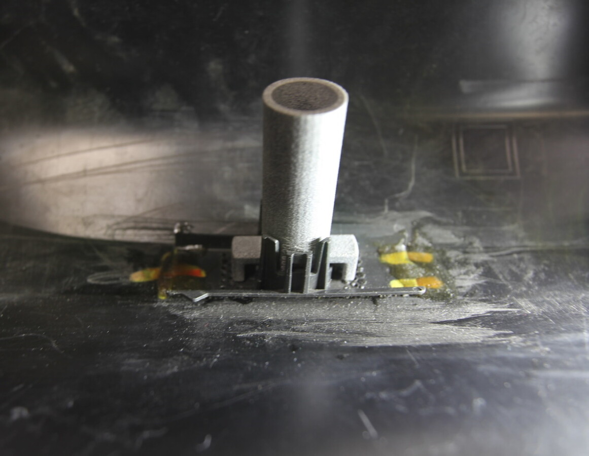 CAUTIONPrevent adhesive from entering the center hole of the retainer.CAUTIONClean off any residue that may enter with an IPA wipe. Otherwise, the parking distance sensor will not seat properly.NoteInstall the fixture tool to secure the retainer while adhesive cures.NoteThe fixture tool is self centering.