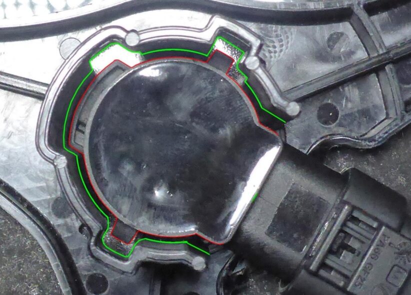 surface of the LH rear pinch sensor carrier and the LH rear door mating area.