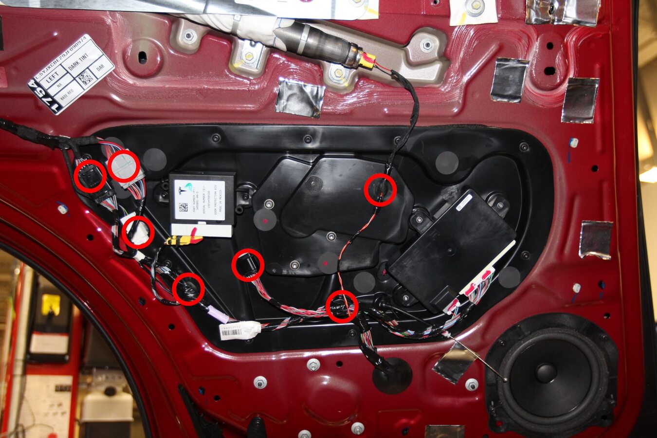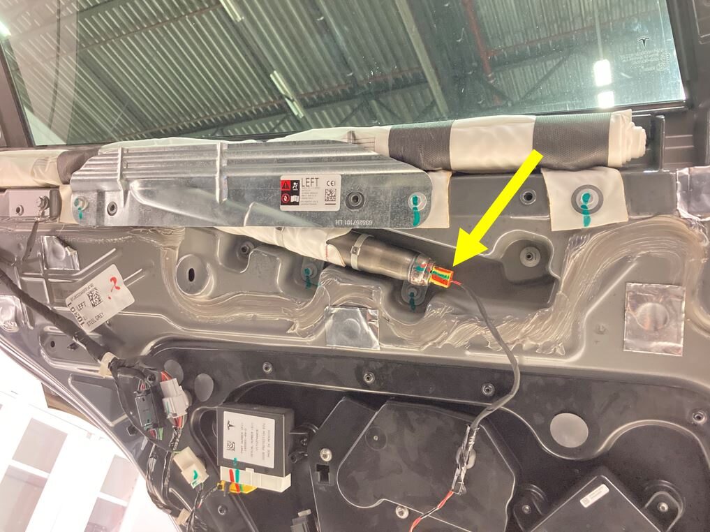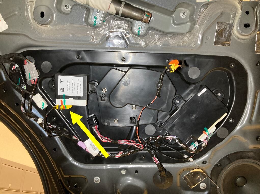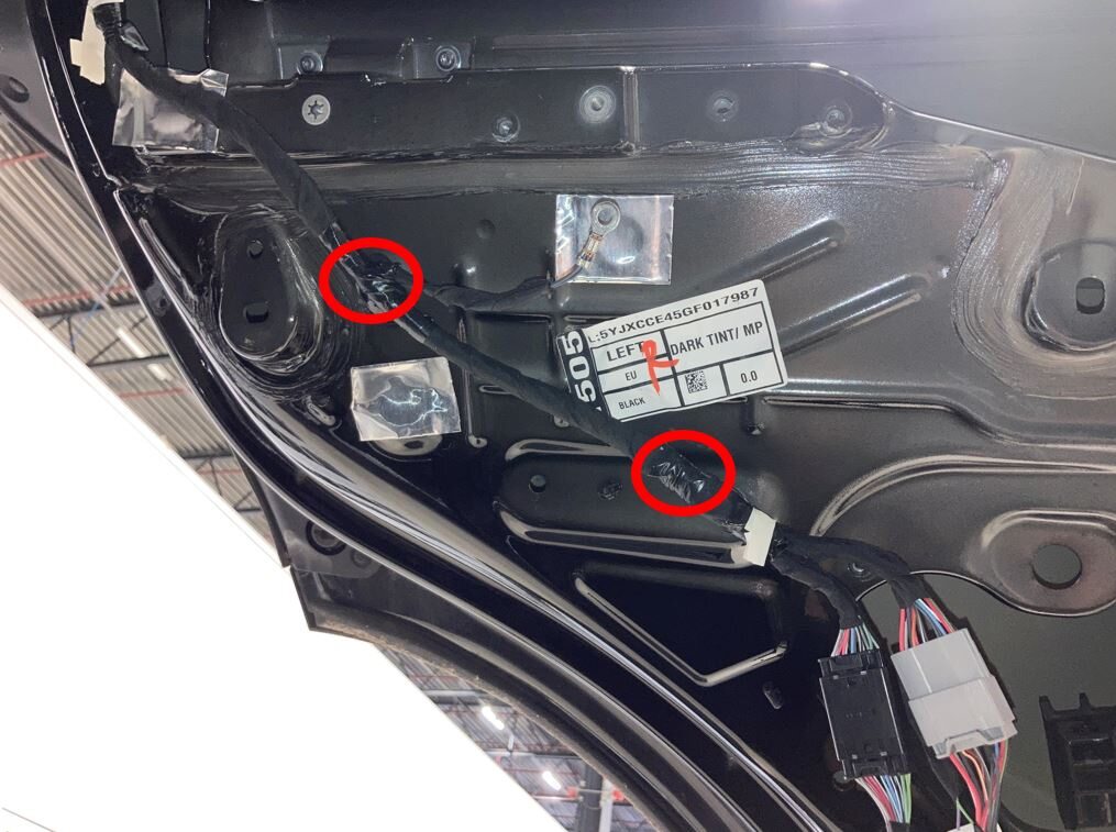 LH rear door where the pinch sensor is stuck with 3M double sided tape