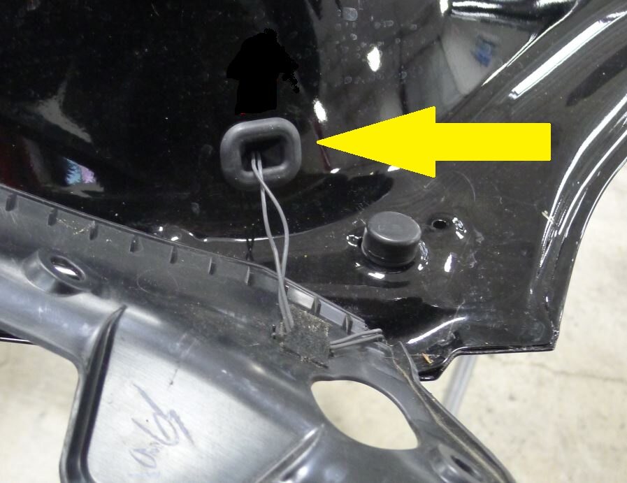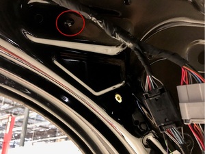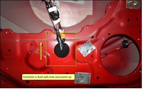 Note1x grommet. Route the front rear door pinch sensor harness through the hole and secure the grommet.