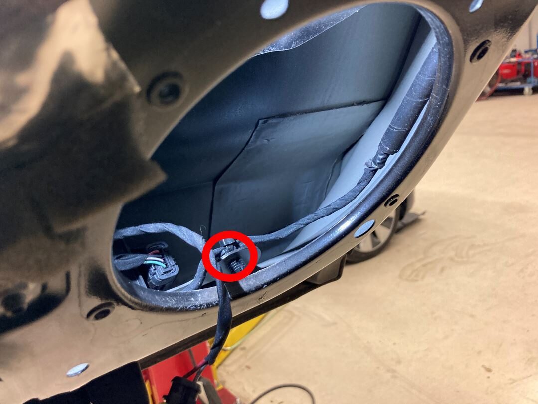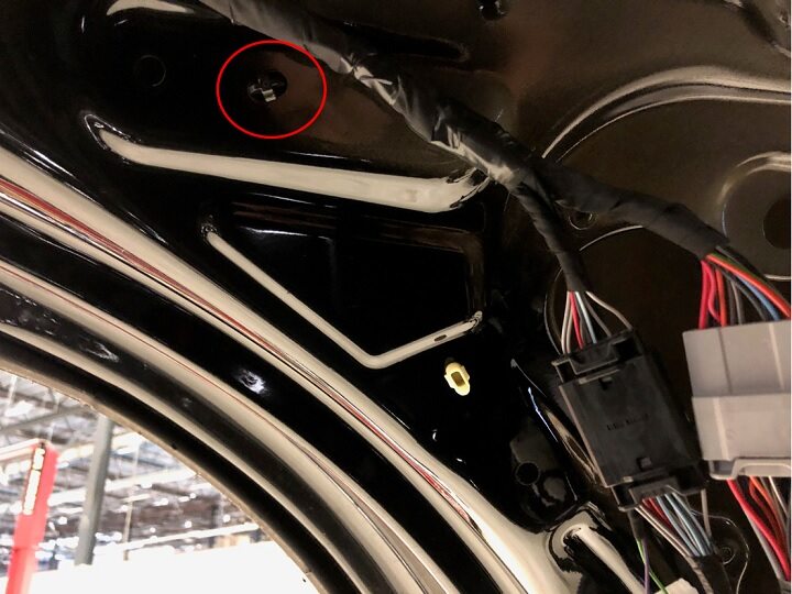 ground wire to LH lower rear door.
