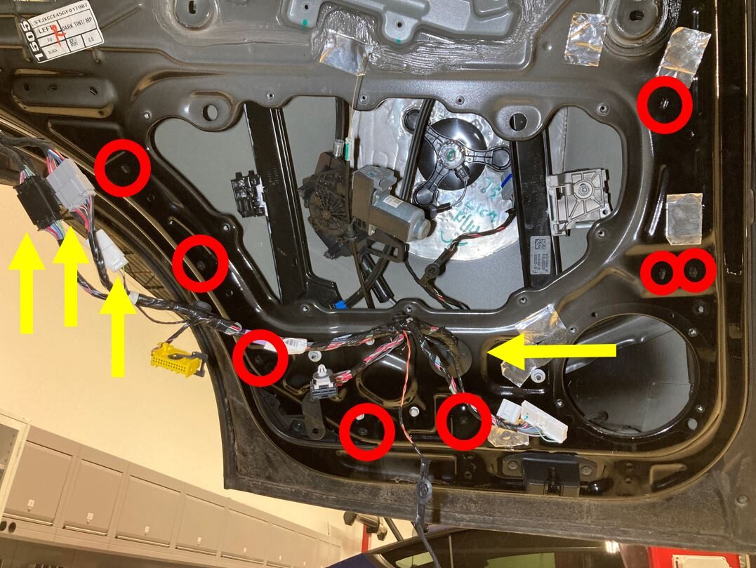window regulator harness to the LH closeout panel.