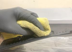Use IPA wipes to clean the LH cladding