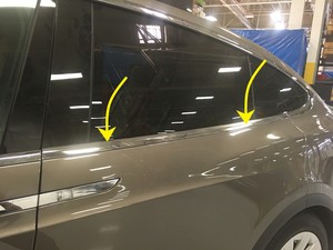 revisions to a 2015-2020 Model X, first perform the retrofit procedure. See Door Assembly - Rear Lower LH (Retrofit).