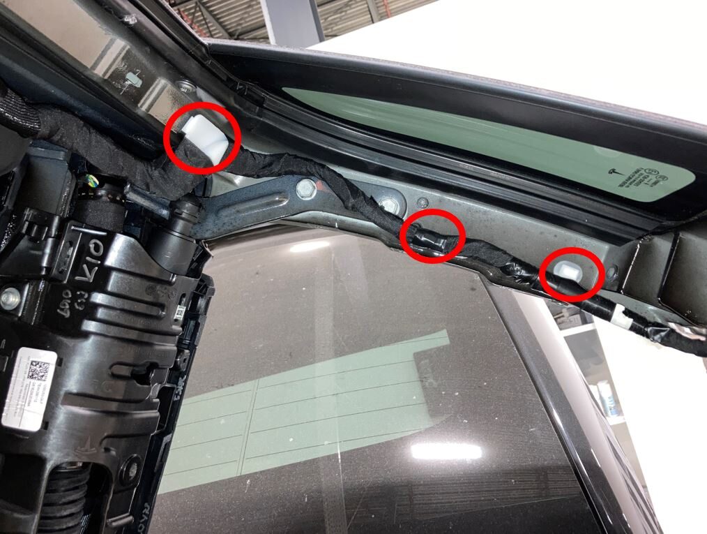 the reworked LH pinch sensor carrier onto the LH rear door.