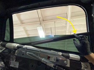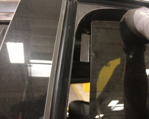 NoteRecommend assistance. Working from the outside of the vehicle, pull the front of the window towards the rear of the vehicle and then lift the window out from the door. Take caution do not damage any components