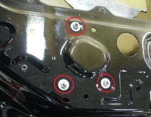 NoteThe nut does not need to be fully removed. If required, power the vehicle back on and use the window switch tool to move the regulator for access to the nut.