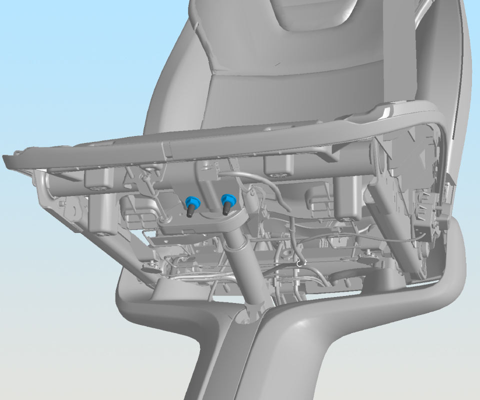 - Remove the screws (x2) that secure the lower trim panel to the bottom of the seat frame.