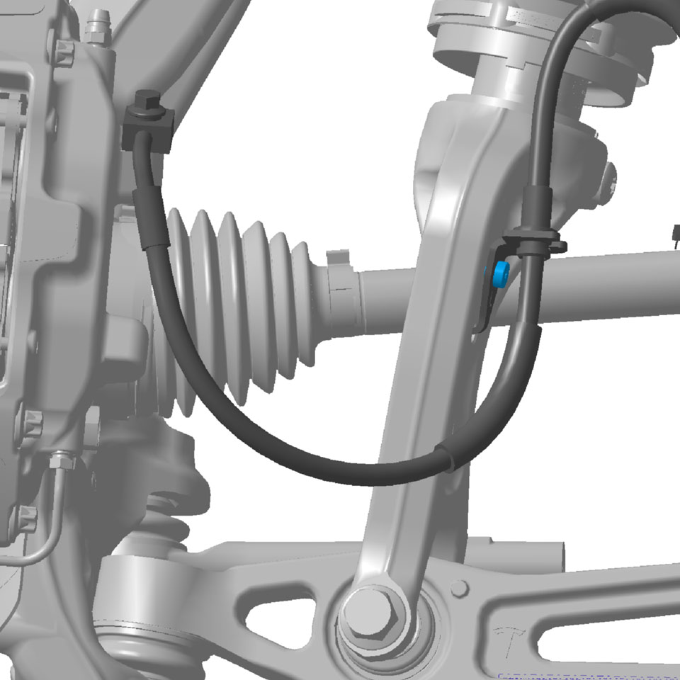 Release the wheel speed sensor harness from the bracket on the control arm.