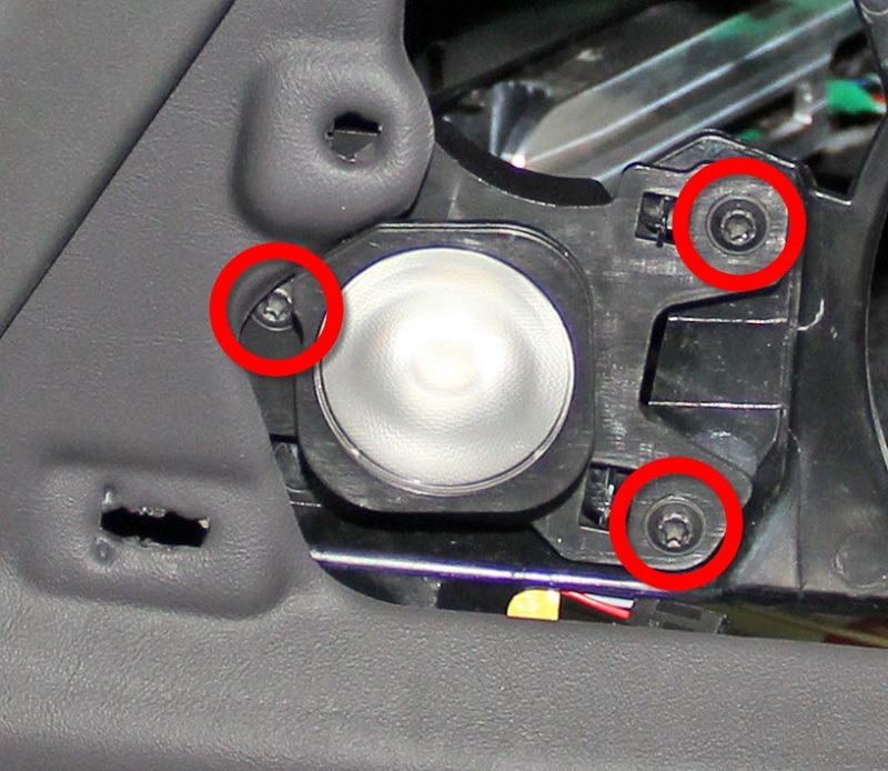 side of the door trim panel, remove the screws (x3) that secure the welcome