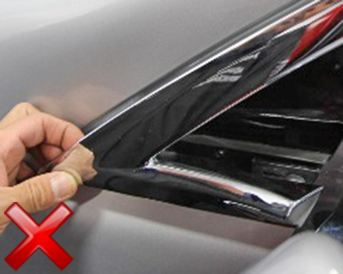 Correct Incorrect - Remove the front upper brightwork from the vehicle.