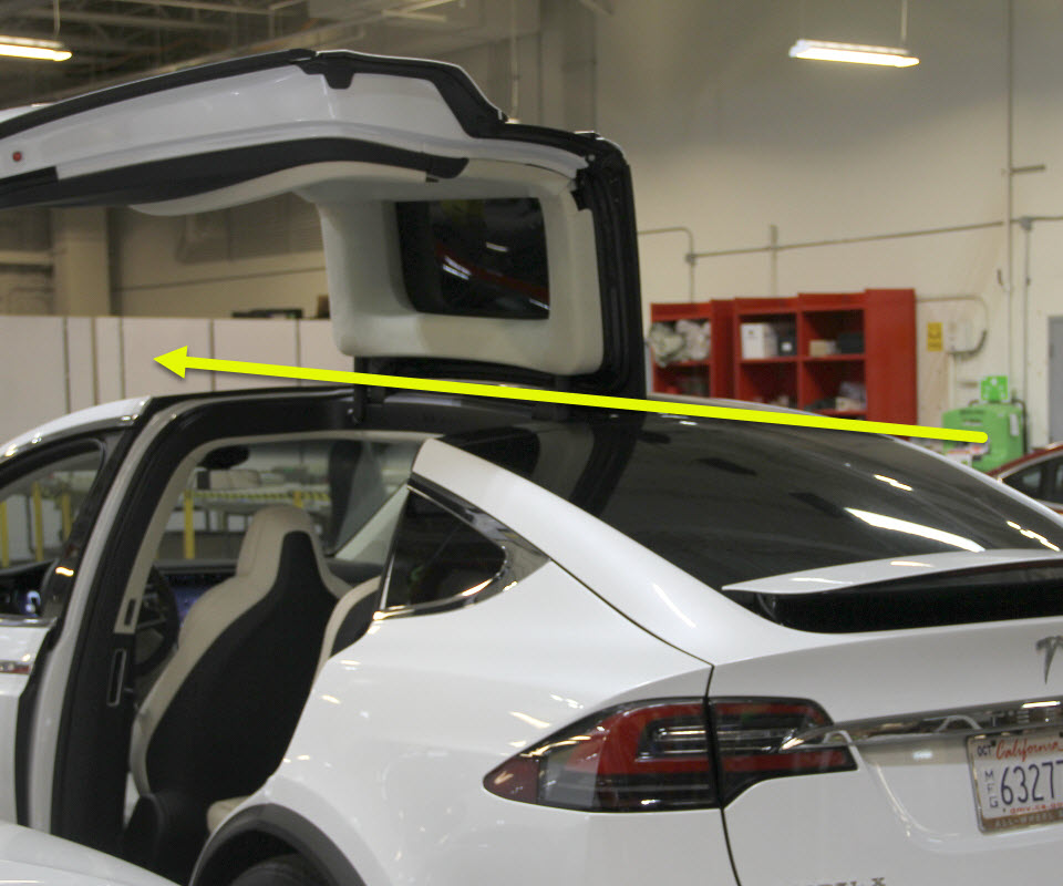 - Remove any obstructions and open the rear LH door, and allow it to raise to the highest position.