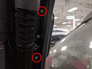 Note17x clips, Align strut cover first, 1x connector may be present on early production vehicles