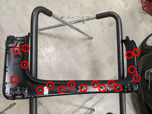 Note5x bolts, T25, 2.5 Nm, 4.0 Nm, 1x harness clip, Fastener count may vary