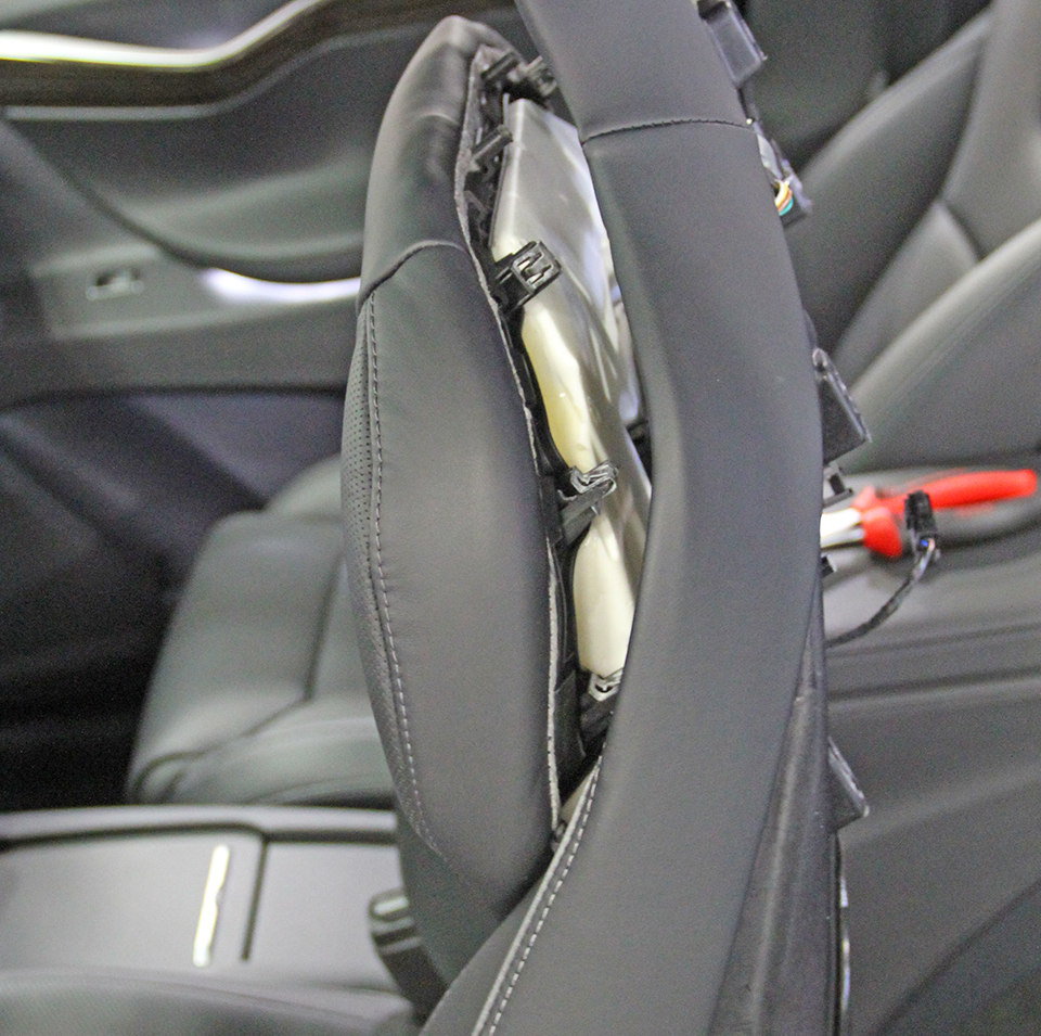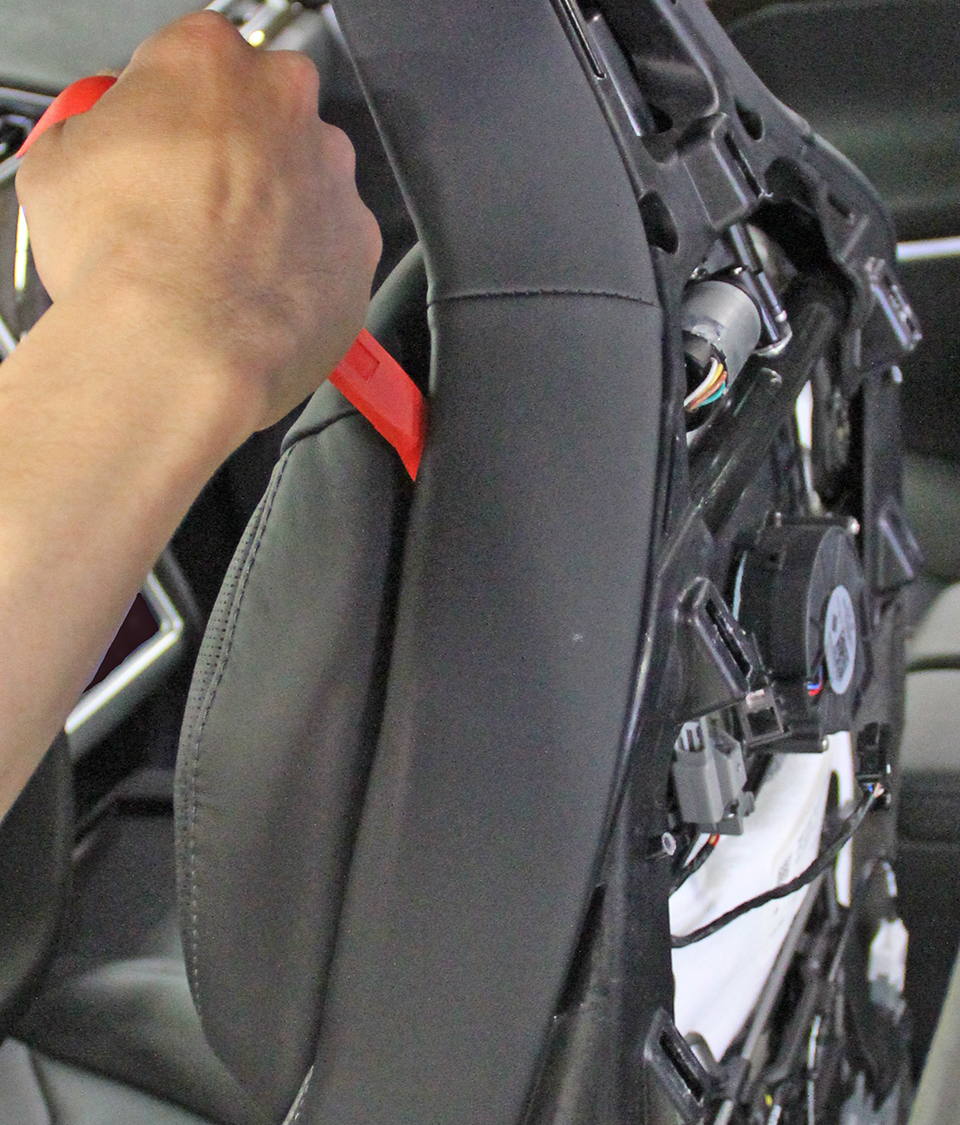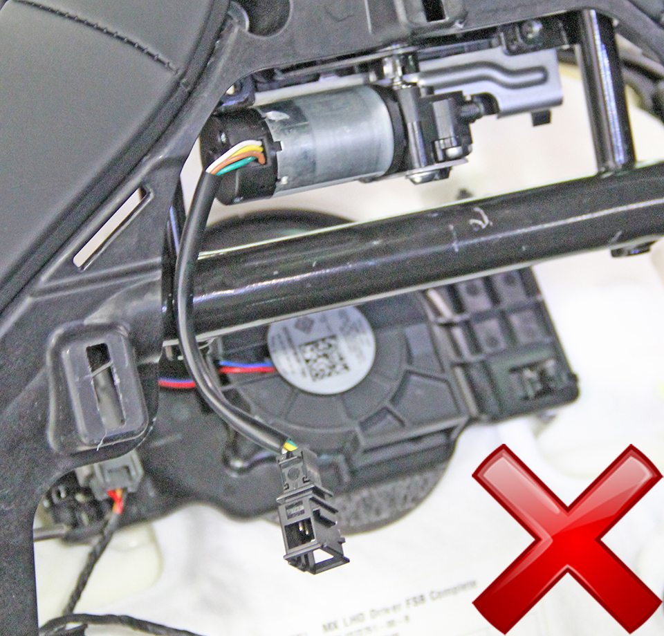 Carefully cut the cable tie that secures the headrest motor harness to the
