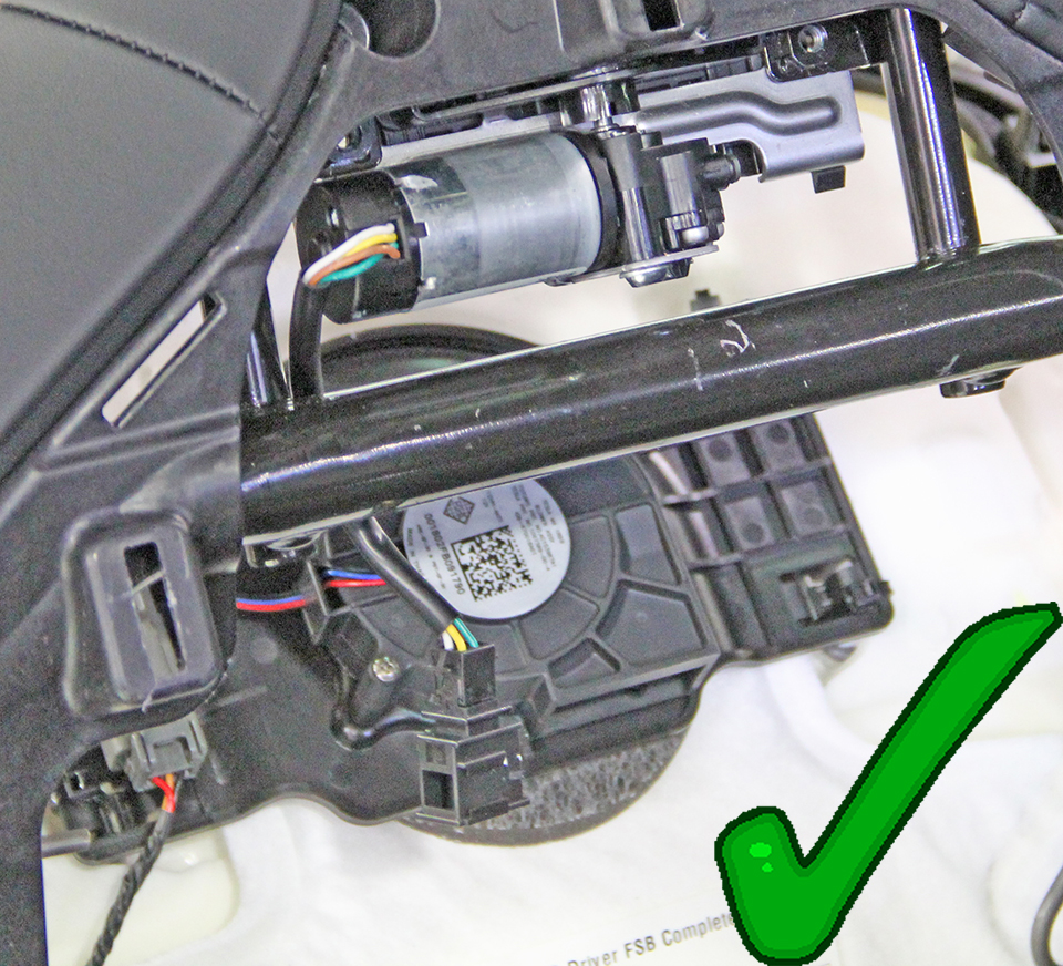 Ensure that the headrest motor harness is routed in front of the seat