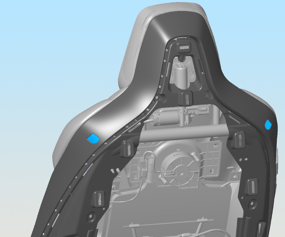- Release the clips (x3) that secure the headrest frame plate to the seat frame. Remove the headrest frame plate.