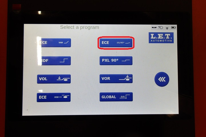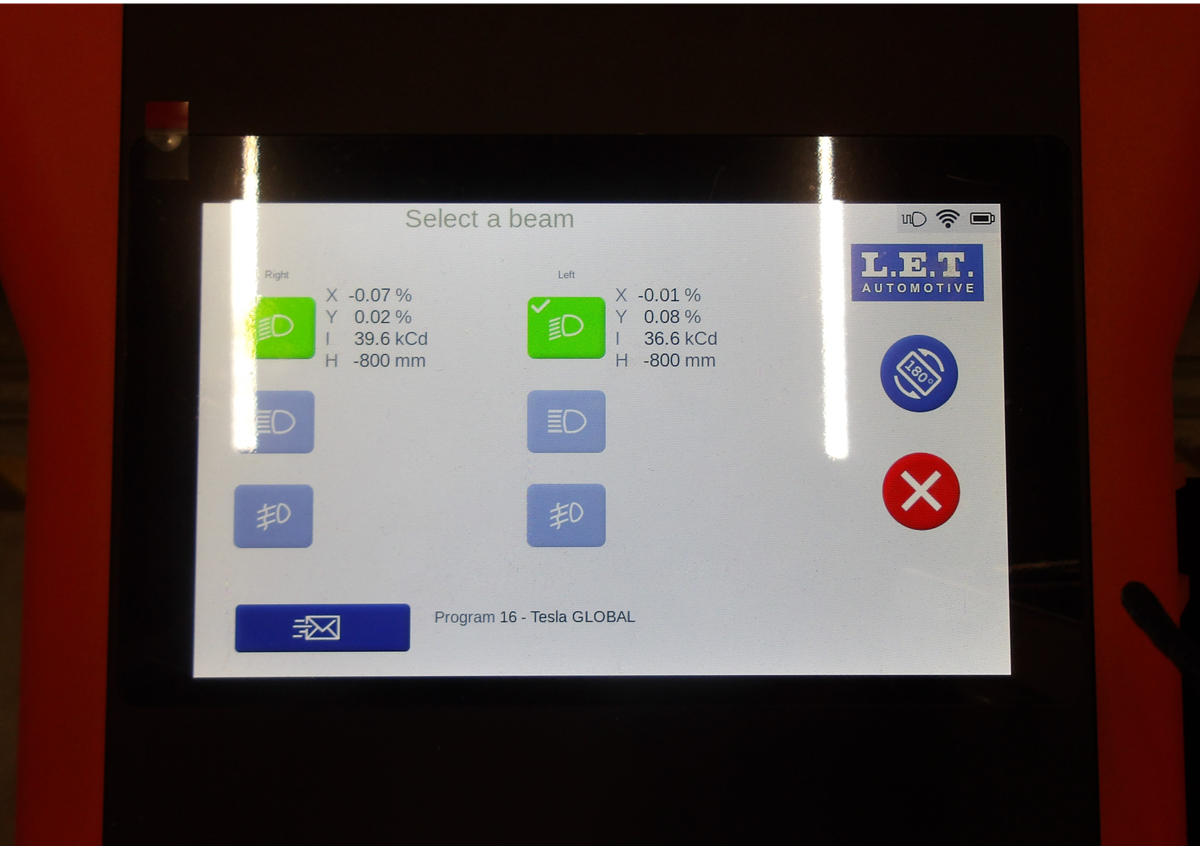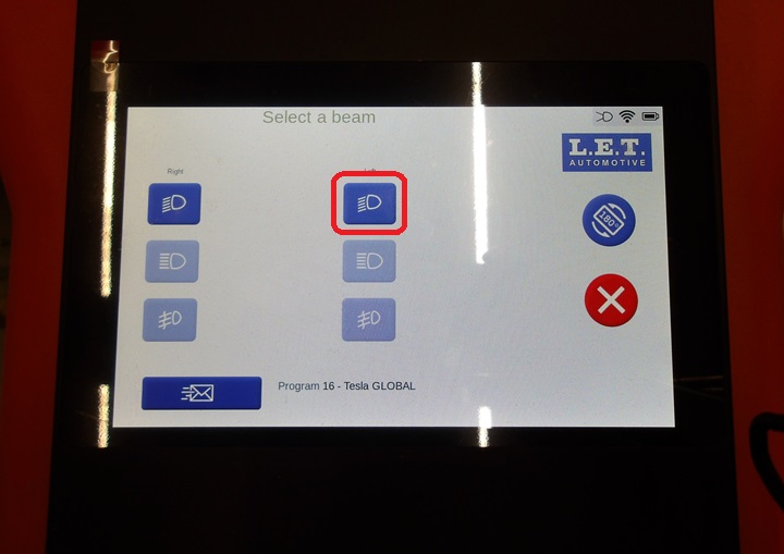 machine for the LH headlight: select and then select the LH headlight icon.