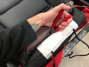 NotePush both inboard and outboard upholstery strap buckles towards each other to release