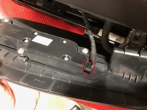 Note1x connector, 1x clip, Slide connector towards back of seat bottom to release connector from clip