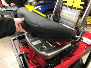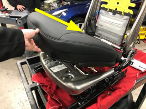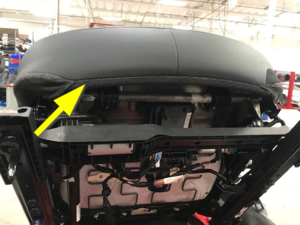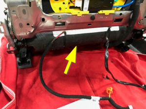 NoteInsert the rear of the seat cushion to seat bottom frame and then lower the rest on the seat cushion to the seat bottom frame, Ensure wiring harness are routed through the back of seat frame