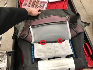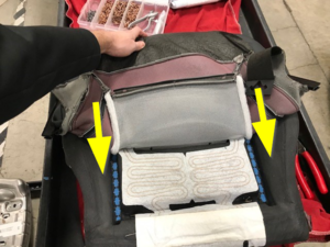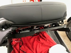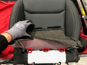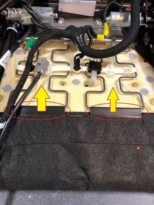 Connect the seat heater harness and secure to spring mat clip