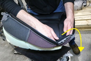 Turn front and sides of seat upholstery inside out