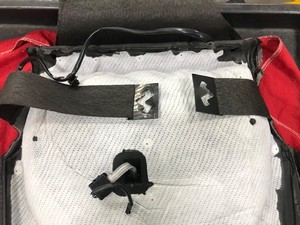 Zip-tie both LH seat back heater and sensor harnesses onto spring mat