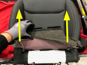 NoteApply light pressure to the rear of the outer trim to fully seat onto the seat frame, A fully installed trim should not show any metal from the frame and should line up with the contour of the seat back