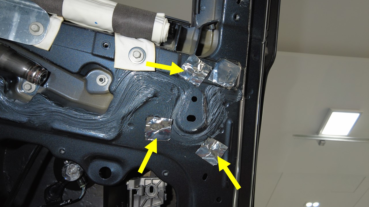 Remove the nuts (x3) that secure the door handle to the door (torque 9 Nm).