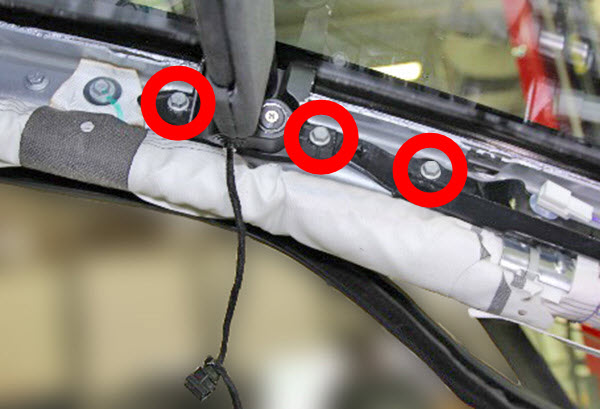 Remove the bolts (x3) that secure the sun visor and support bracket (torque 4