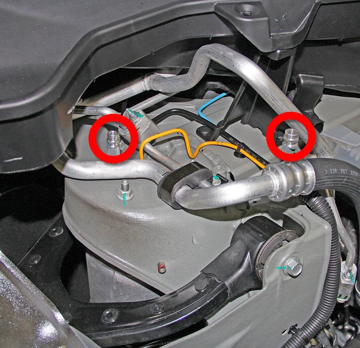 - Check the full length of the service lines and service ports for damage or degradation. Ensure that there are no obvious signs of damage or degradation that could cause a leak when servicing the vehicle.