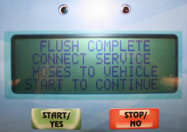 When the entire procedure has been completed, the screen displays "FLUSH COMPLETE CONNECT