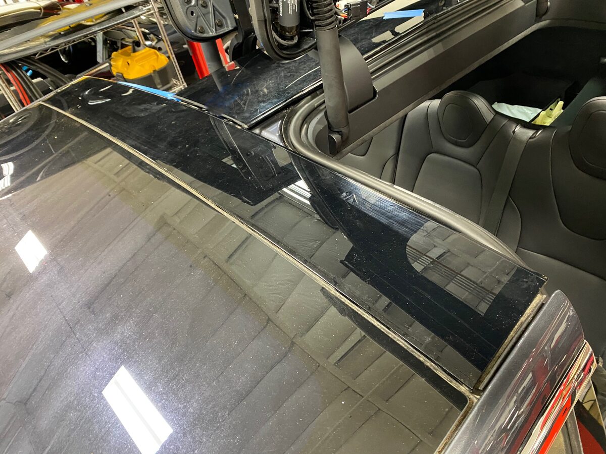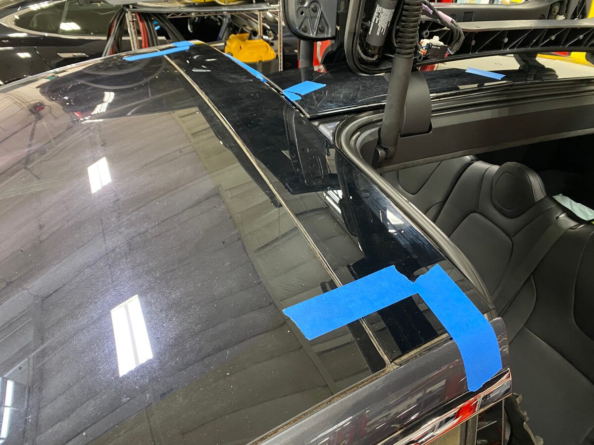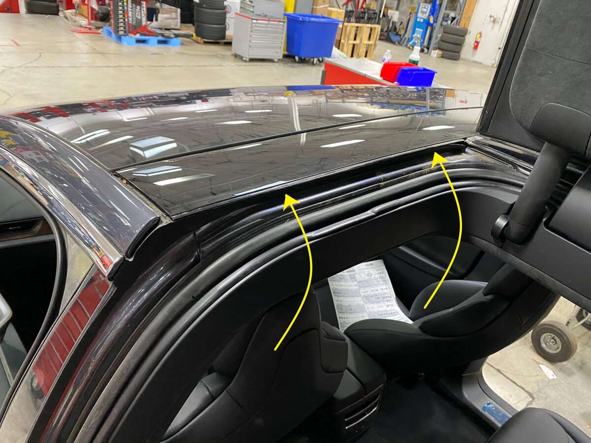 Use a glass cutting blade to release the front roof applique from the vehicle.