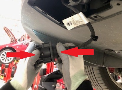 Remove the screws (x3) that attach the trailer connector housing to the trailer hitch (torque 4.5 Nm).