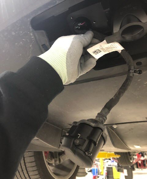 Pull the trailer light adapter cable assembly through the mounting point until the trailer harness connector and housing are accessible.