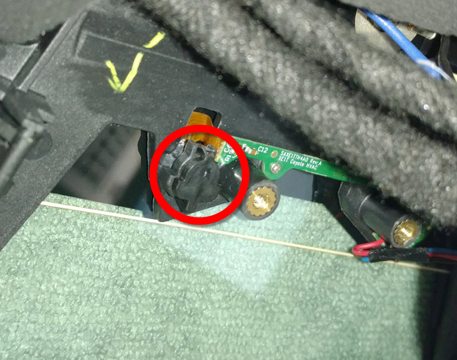 Connect the harnesses. Affix the connectors to the double-sided foam tape on the underside of the glare shield.