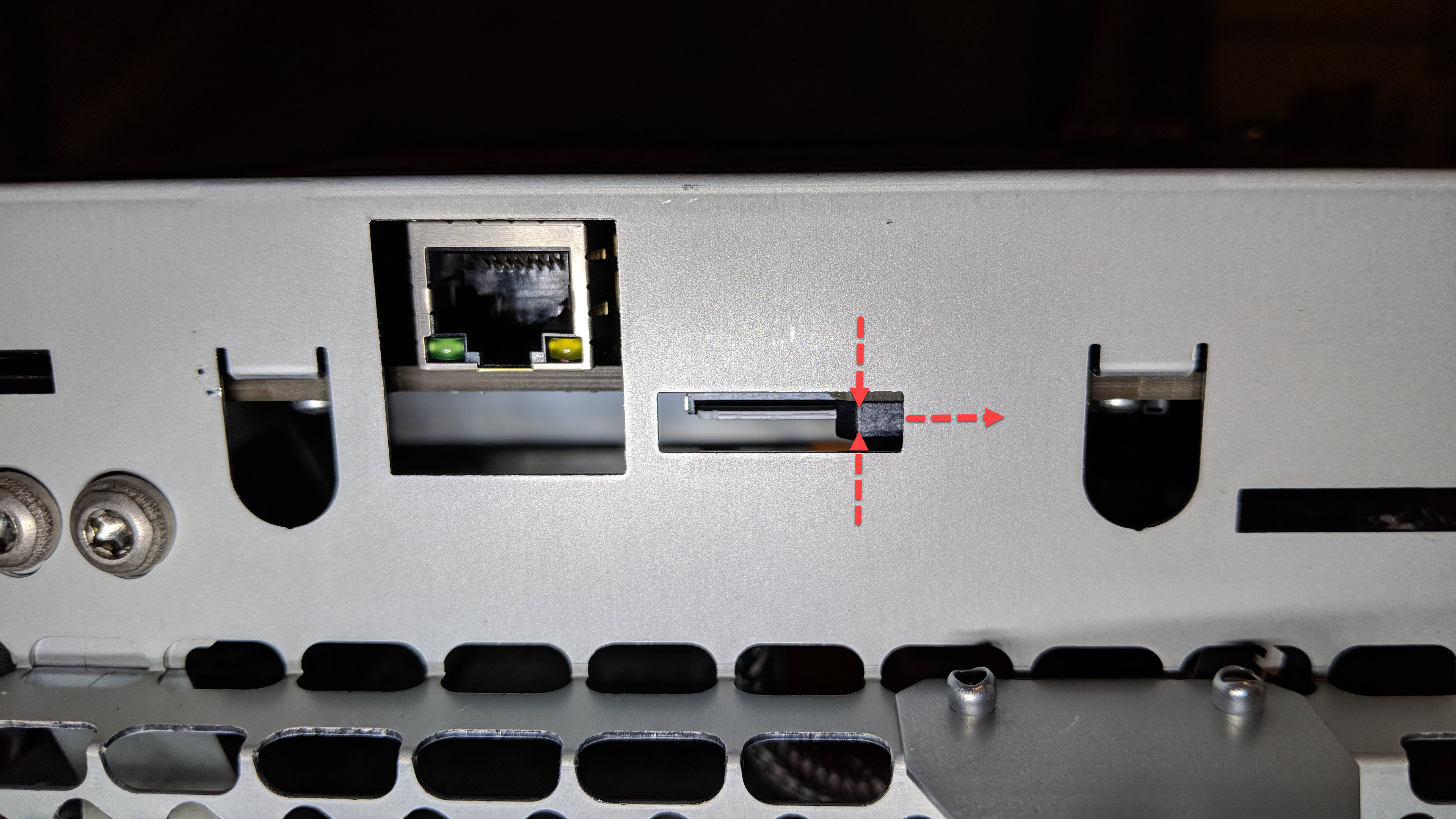 CAUTIONMove release tab to eject card, use pocket screw driver at indicated area to allow card to move unobstructed.