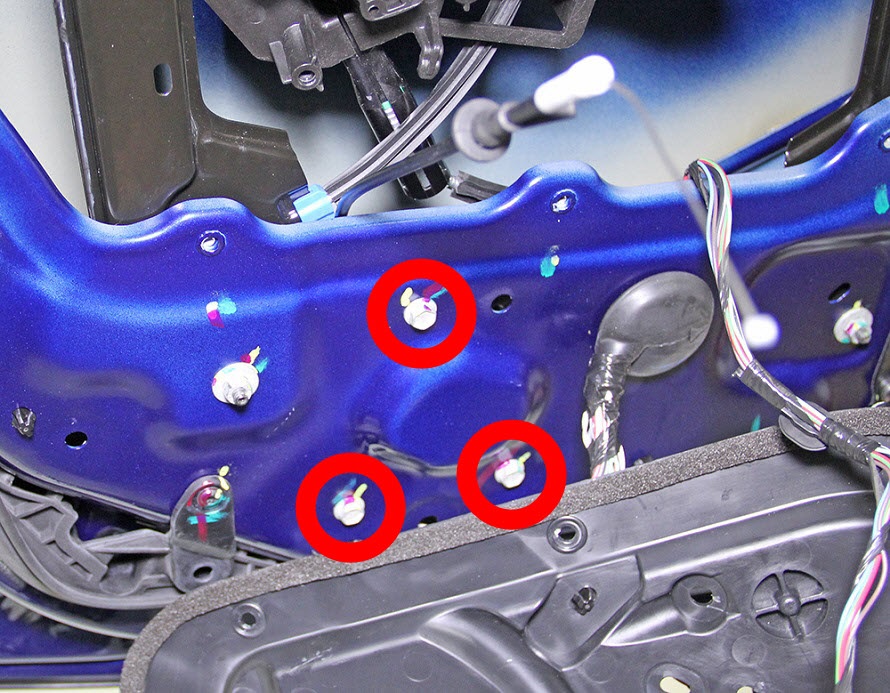 Remove the bolts that secure the cinching actuator to the door (torque 3 Nm).