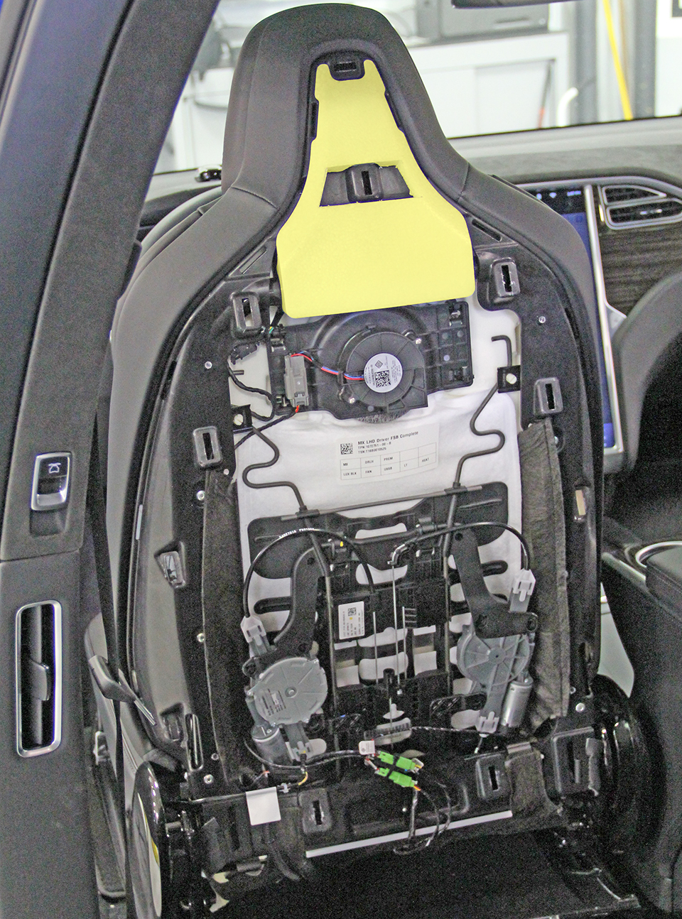 Remove and discard the screws (x4) that secure the headrest trim to the
